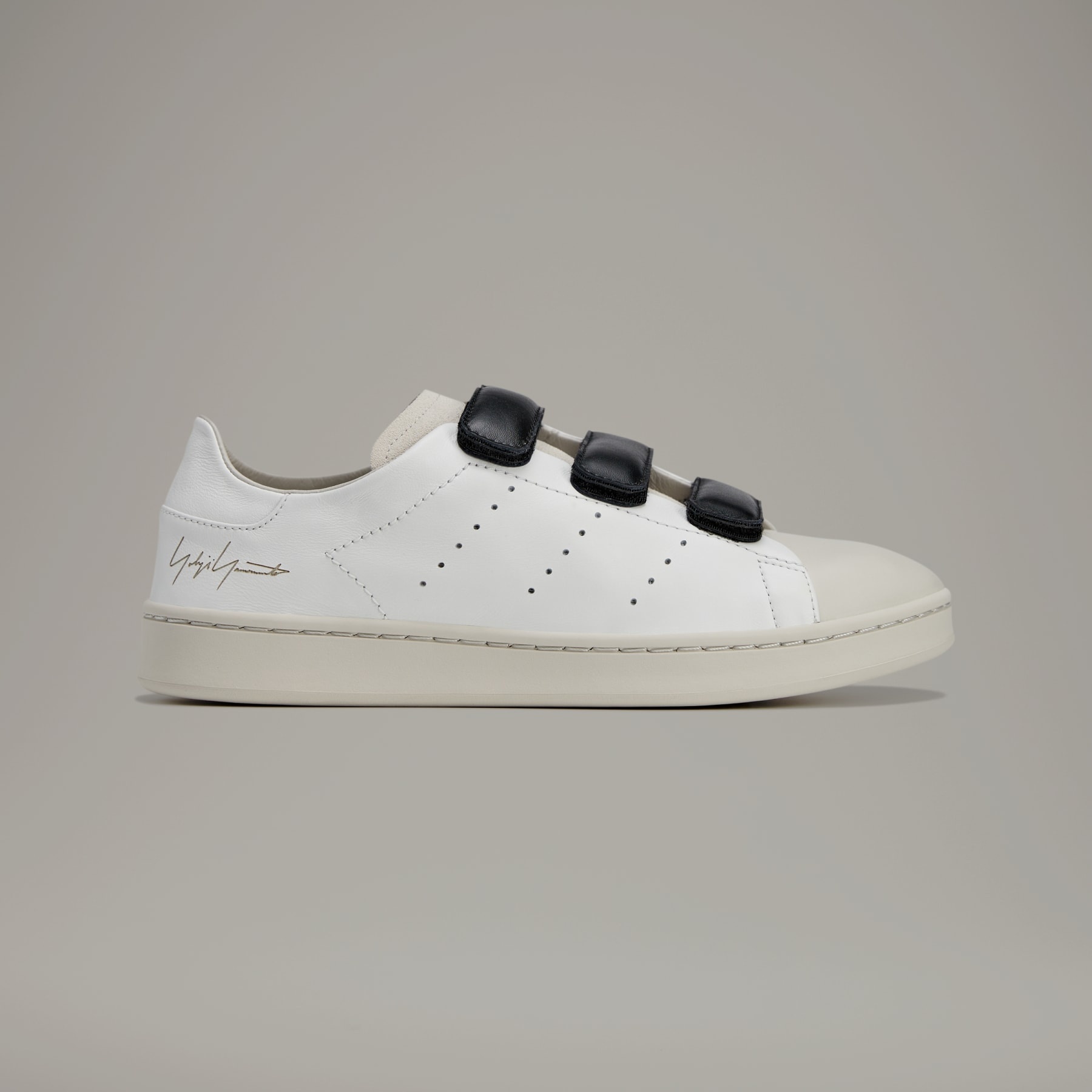 A hook-and-loop version of the Stan Smith crafted by Y-3. Thoughtful design makes a classic all that much better. With a clean look that knows minimalism is modern, the Y-3 Stan Smith Hook-And-Loop borrows all the best details from the original — think perforated 3-Stripes — but in exceptionally soft leather, a design choice inspired by the feel of luxury gloves. This release has a slightly more elevated profile along with a Yohji Yamamoto signature graphic as a subtle element near the heel and leather hook-and-loop straps as closure. Details - Regular fit - Hook-and-loop closure - Leather upper - Textile lining - Rubber outsole - Y-3 logo - Imported - Product code: JQ5000 - Product color: Core White / Talc / Black