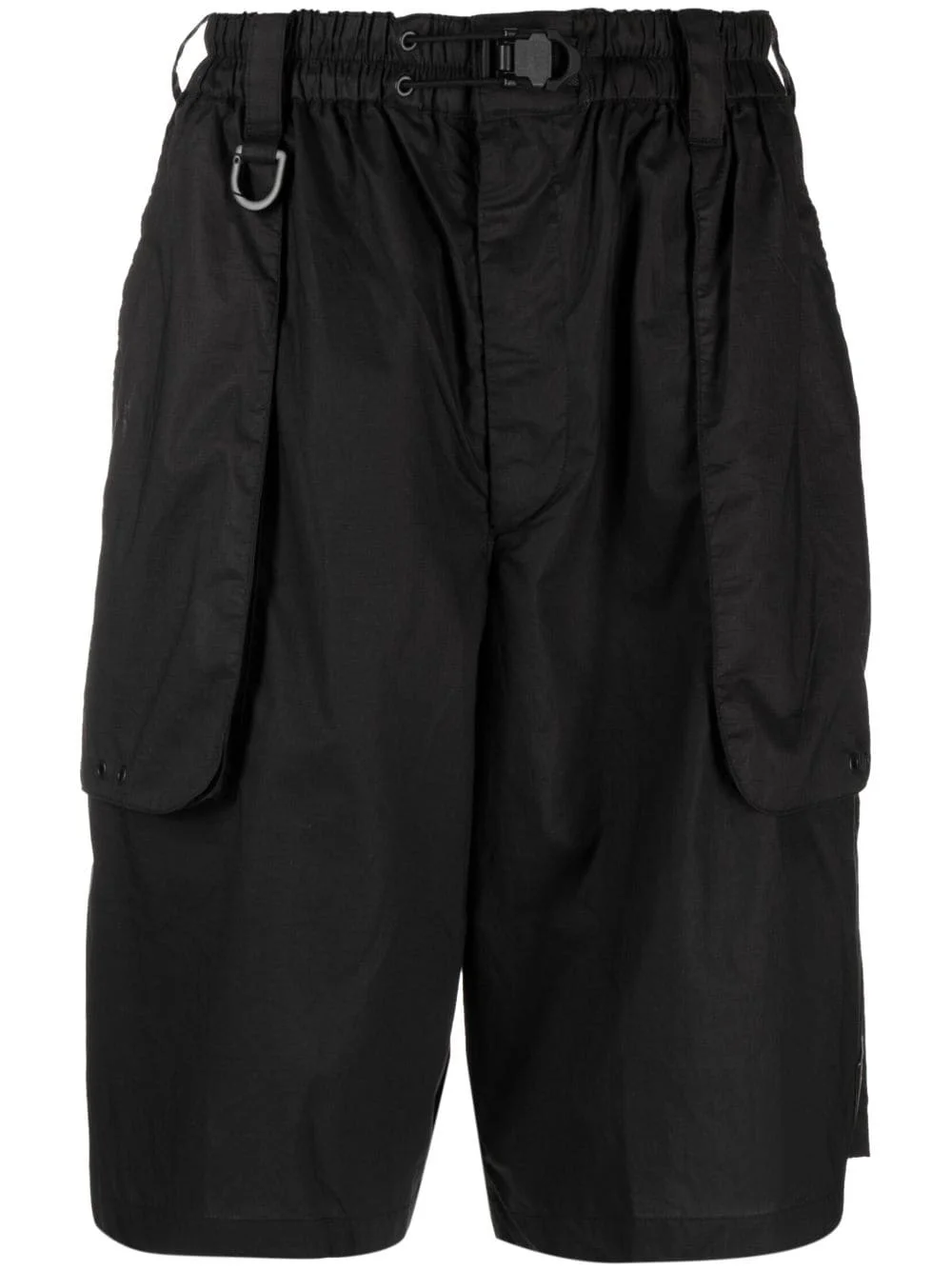 wide-leg ripstop shorts Highlights - Black - Cotton - Ripstop texture - D-ring findings - Eyelet vents - Wide leg - Elasticated waistband - Front buckle fastening - Belt loops - Two diagonal pockets to the sides - Two rear zip-fastening pockets - Knee-length Imported Composition Cotton 100% SIZE & FIT Model measurements Height 6 ft 2 in(1.88 m) Bust/Chest 35.03 in(89 cm) Hips 35.82 in(91 cm) Waist 27.95 in(71 cm) FittingInformation Designed with a wide leg, offering a loose and roomy fit Made from a midweight non-stretch fabric This piece fits true to size – take your usual size Washing instructions Machine Wash