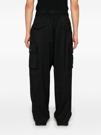 wide-leg trousers Highlights - Black - Twill weave - Concealed fly and button fastening - Elasticated waistband - Belted waist - D-ring findings - Drop crotch - Multiple cargo pockets - Wide leg Imported Composition Cotton 100%, Polyester 70%, Wool 30% SIZE & FIT Model measurements Height 6 ft 2 in(1.87 m) Bust/Chest 37.79 in(96 cm) Hips 37.79 in(96 cm) Waist 30.31 in(77 cm) FittingInformation Designed with a wide leg, offering a loose and roomy fit The belt offers adjustability for fitted preferences Made from a midweight non-stretch fabric