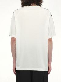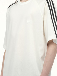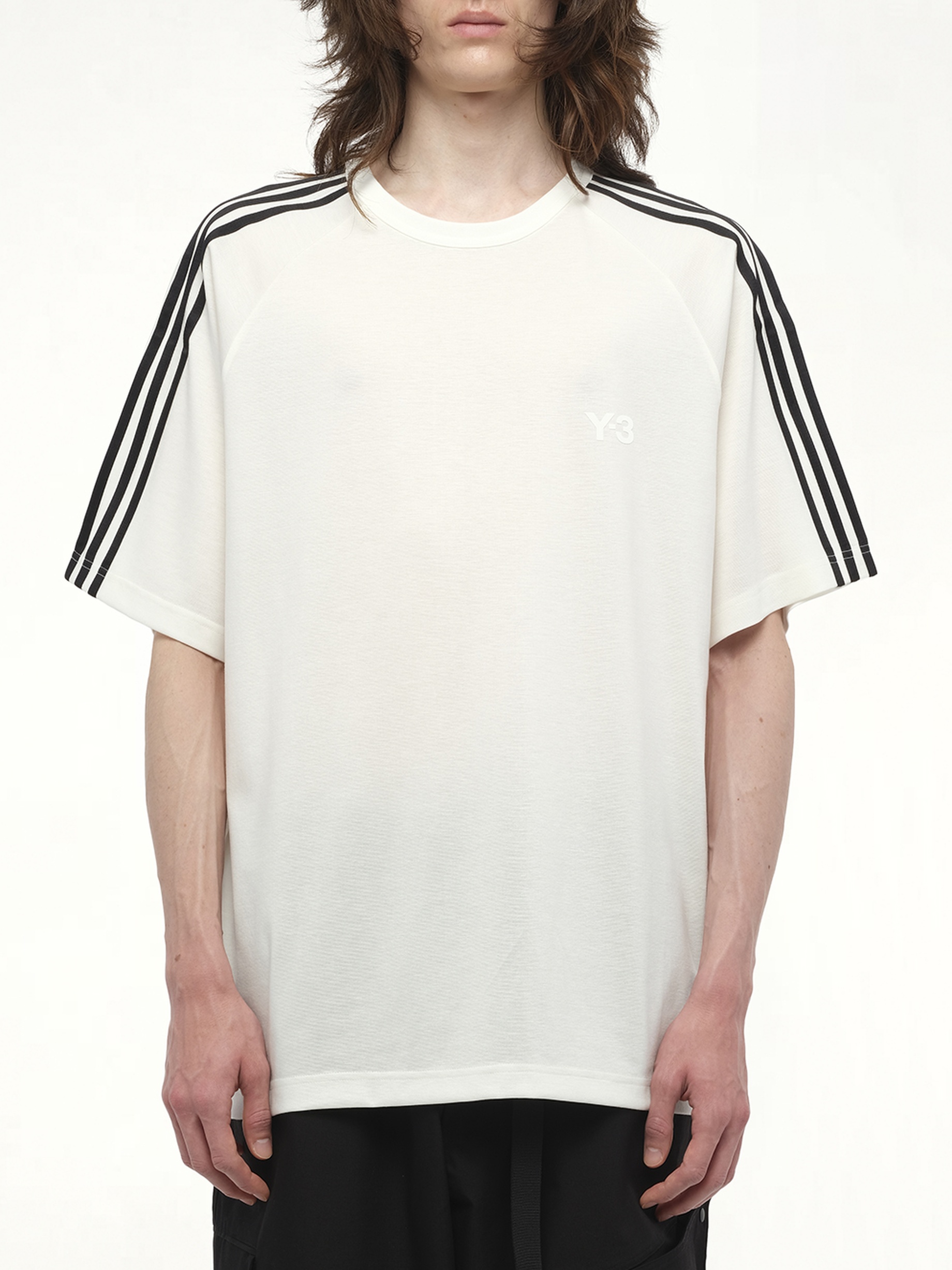 Y-3's Wire Stripe Short Sleeve T-Shirt in White offers a modern twist on a classic design, featuring subtle wire stripe detailing for a unique look. Perfect for any casual occasion, this t-shirt effortlessly combines style and comfort. - Composition: 63%Lyocell-Tencel/16%Pa6/16%Wool-Sheep/5%Elastane - Short sleeve design - Wire stripe detailing - Relaxed fit - Versatile white color - Signature Y-3 branding Model is 187 cm and wears size M SKU: JY8187