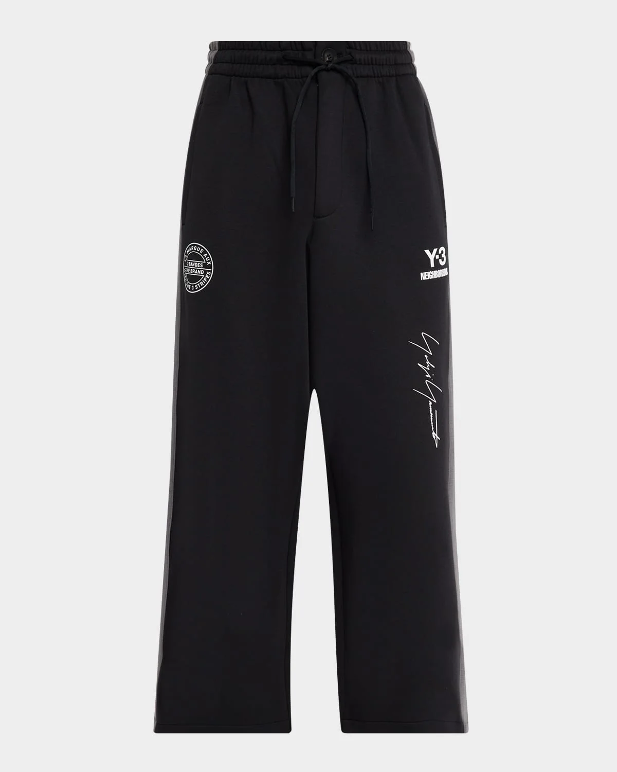 These Y3 collaboration track pants are crafted with a spacer construction for a lightweight, breathable yet structured silhouette, versatile for everyday wear. From the Autumn/Winter 2025 collaboration with Japanese streetwear brand NEIGHBORHOOD Regular rise Side slip pockets Signature 3Stripes on the sides Loose fit through straight legs Elasticized drawstring waistband Waistband tab adjusters Pullon style Machine wash cold. Lay flat to dry Cotton/polyester/elastane Imported