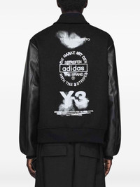 x Yohji Yamamoto ribbed bomber jacket Highlights - Black - Inside pocket - Two side pockets - Ribbed collar - Zip closure Imported Composition Recycled Polyester 60%, Wool 40% Washing instructions Read Manufacturer Guidelines