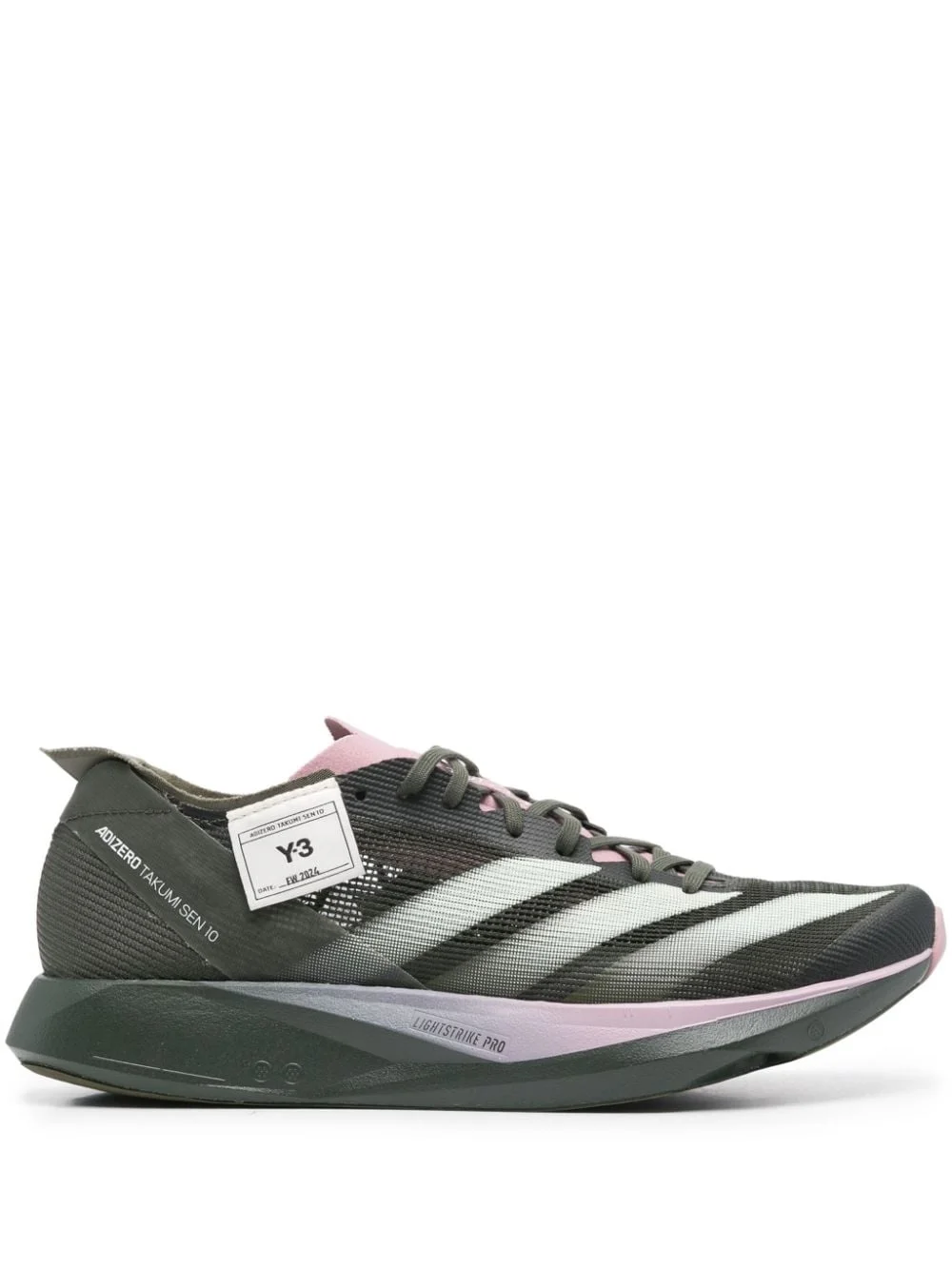 Takumi Sen 10 sneakers Highlights - Olive green/multicolour - Mesh panelling - Front lace-up fastening - Panelled design - Logo print to the side - Logo patch to the side - Signature 3-stripes logo - Logo-print tongue - Round toe - Branded insole - Rubber sole Imported Composition Sole: Rubber 100% Lining: Fabric 100% Outer: Fabric 100% SIZE & FIT Measurement HEEL 1.57 in(4 cm)