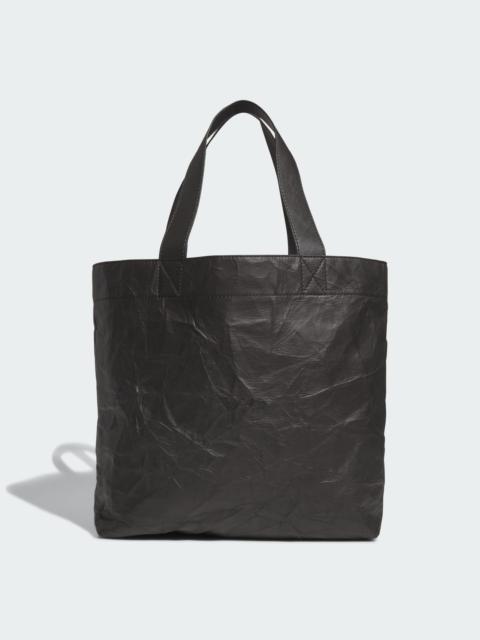 A Y-3 tote bag in supple, textured leather. Experimenting with a classic shape, the Y-3 Leather Tote Bag is fabricated in crinkled cow leather for an elevated look and feel. It's fully lined with a snap closure, an inner pocket and a debossed Y-3 logo to round out the look. Details - Outer:100% polyurethane; Inner:100% polyester (recycled) - Fully lined - Snap-button closure - Inner zip pocket - Debossed Y-3 logo - Imported - Product code: JD2900 - Product color: Black