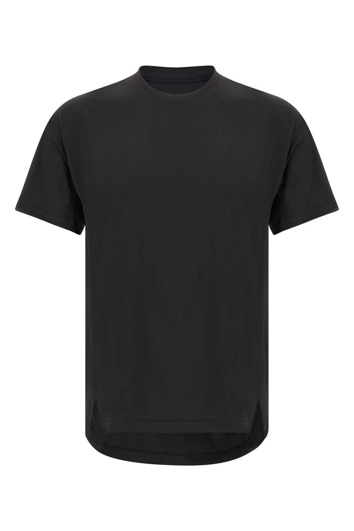 cod. KF6197BLACK 'Y-3 Running' t-shirt in lightweight and elastic technical fabric with hydrophilic finish and mesh inserts, back logo patch, crew neck, short sleeves, asymmetrical hem with side slits. Color: Black Size & Fit: true to size fit Composition: 100% polyester Made in: Cambodia