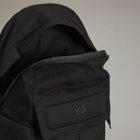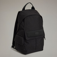 A small Y-3 backpack with premium features and trims. The Y-3 Small Backpack defines modern versatility. It's crafted in strong CORDURA® material, with a rain-cover flap. Storage includes a roomy main compartment that has a laptop pocket and an inner zip pocket with a D-ring. There's also a front inverted pleat pocket and side gusseted pockets to keep essentials within easy reach. A Y-3 logo adds a finishing touch. Details - Dimensions: 17" × 12" × 6.5" - Volume: 35 L - 100% polyamide - Zip main compartment - Inner laptop compartment and inner zip pocket with D-ring - Front inverted pleat pocket with magnet flap closure - Side gusseted pockets with top magnet flap closures - Adjustable straps with air mesh and with front D-ring - Air mesh back and rain cover flap - Silicone Y-3 logo - Imported - Product code: JV9721 - Product color: Black