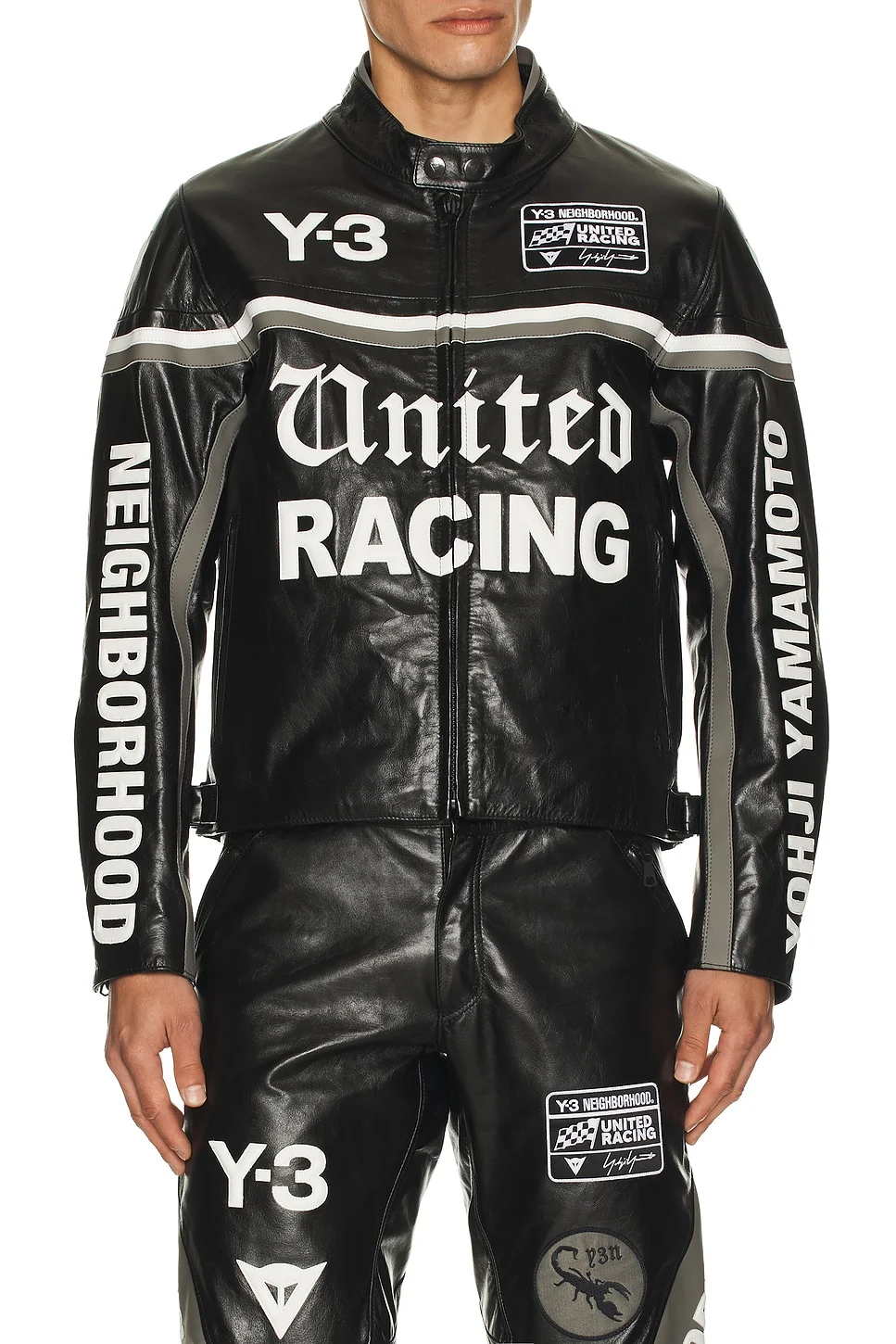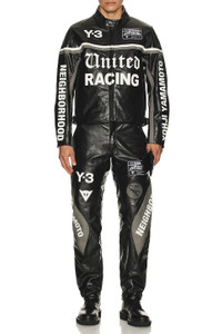 - Y-3 Yohji Yamamoto x NBHD collab 100% leather - Professiona leather clean only - Front zipper closure - Side seam pockets - Logo detail throughout - Zip cuffs - Midweight leather fabric - Revolve Style No. Y3-MO75 - Manufacturer Style No. KR1364