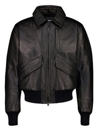 zipped-front leather jacket Highlights - Black - Leather - Zipped front - Flap pockets - Ribbed cuffs - Stand collar Imported Composition Leather 100% Washing instructions Read Manufacturer Guidelines