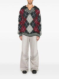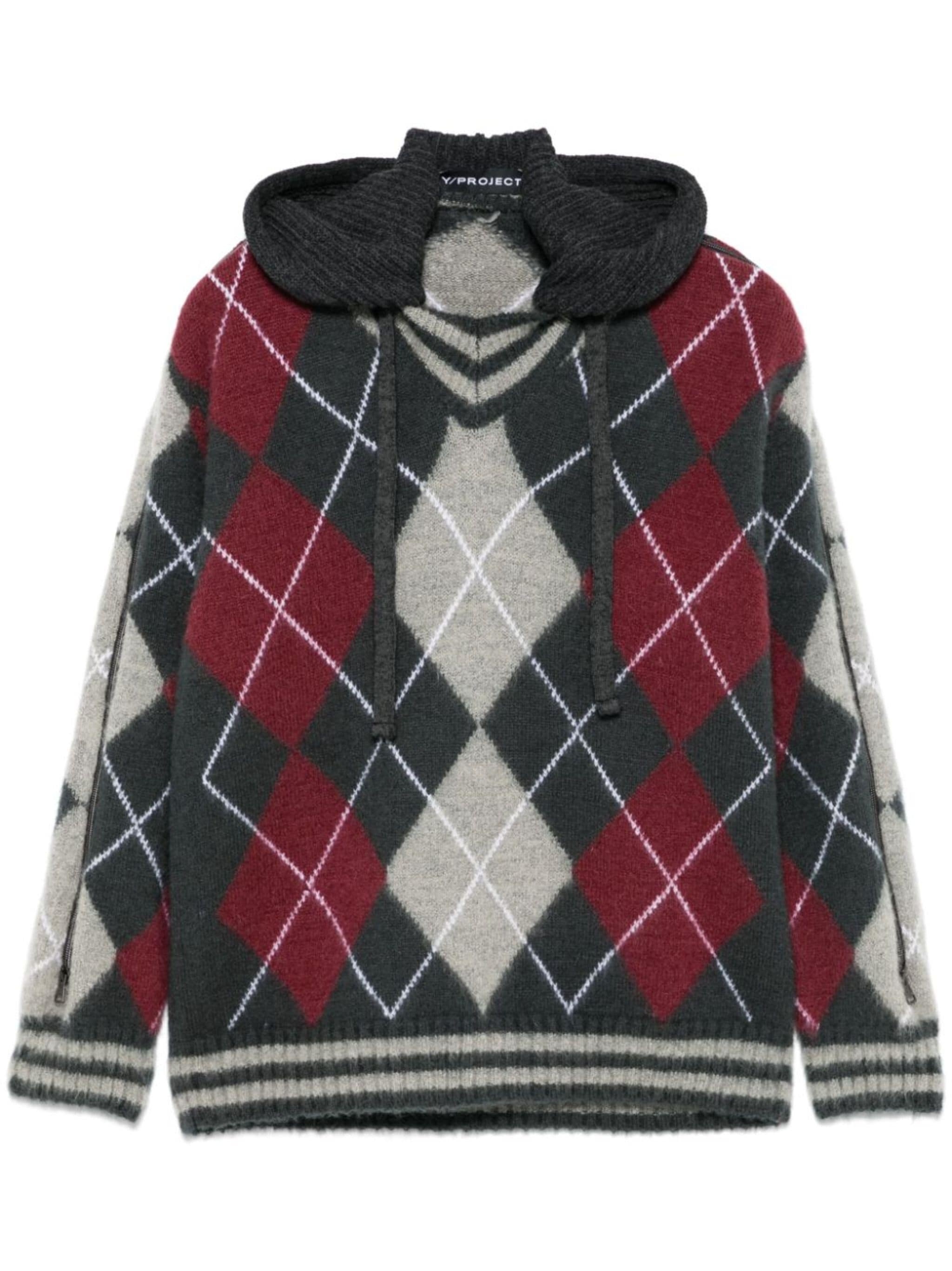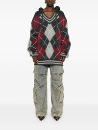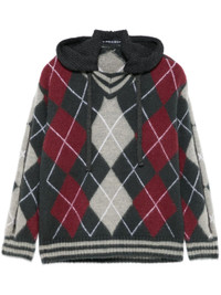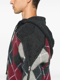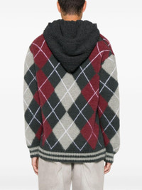 grey/burgundy knitted construction textured finish argyle check pattern drawstring hood V-neck zip details long sleeves ribbed cuffs and hem When buying this unisex item, keep in mind that it is graded in standard men's sizing. Size & Fit Model Measurements: Height: 1.76 m Bust/Chest: 82.0 cm Hips: 89.0 cm Waist: 63.0 cm Model wears size M Fabric and Care Designer Style ID: 206SW005 Designer Colour: GREY/BURGUNDY ARGYLE Composition: Polyester 8%, Polyamide 23%, Other fibres 2%, Acrylic 21%, Mohair 17%, Cotton 28%, Elastane 1% Washing instructions: Hand Wash Made in Italy