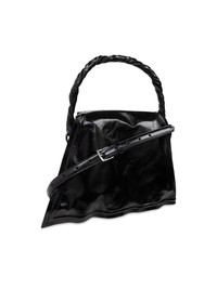 asymmetric tote bag Highlights - Black - Calf leather - Smooth grain - Asymmetric design - Front flap closure - Single rolled top handle - Adjustable detachable shoulder strap - Logo lettering - Silver-tone hardware - Main compartment Made in Italy Composition Outer: Calf Leather 100% SIZE & FIT Measurement HEIGHT 7.87 in(20 cm) WIDTH 9.05 in(23 cm)