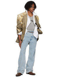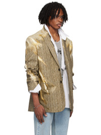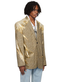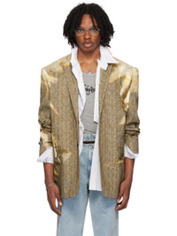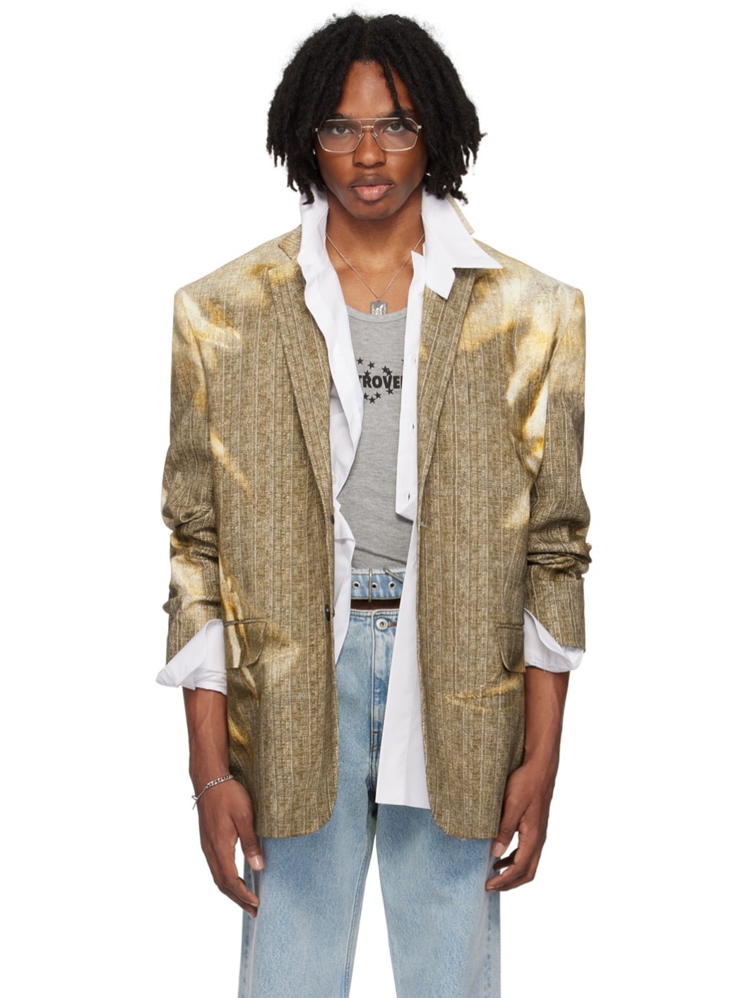 Sun-bleached stretch cotton twill blazer. Trompe l'œil pattern and stripes printed throughout. · Notched lapel · Button closure · Welt pocket and flap pockets · Padded shoulders · Four-button surgeon's cuffs · Welt pocket at interior · Full viscose twill lining Supplier color: Beige stripe