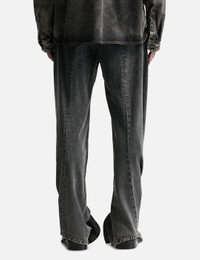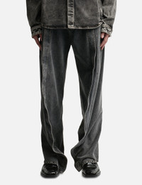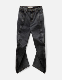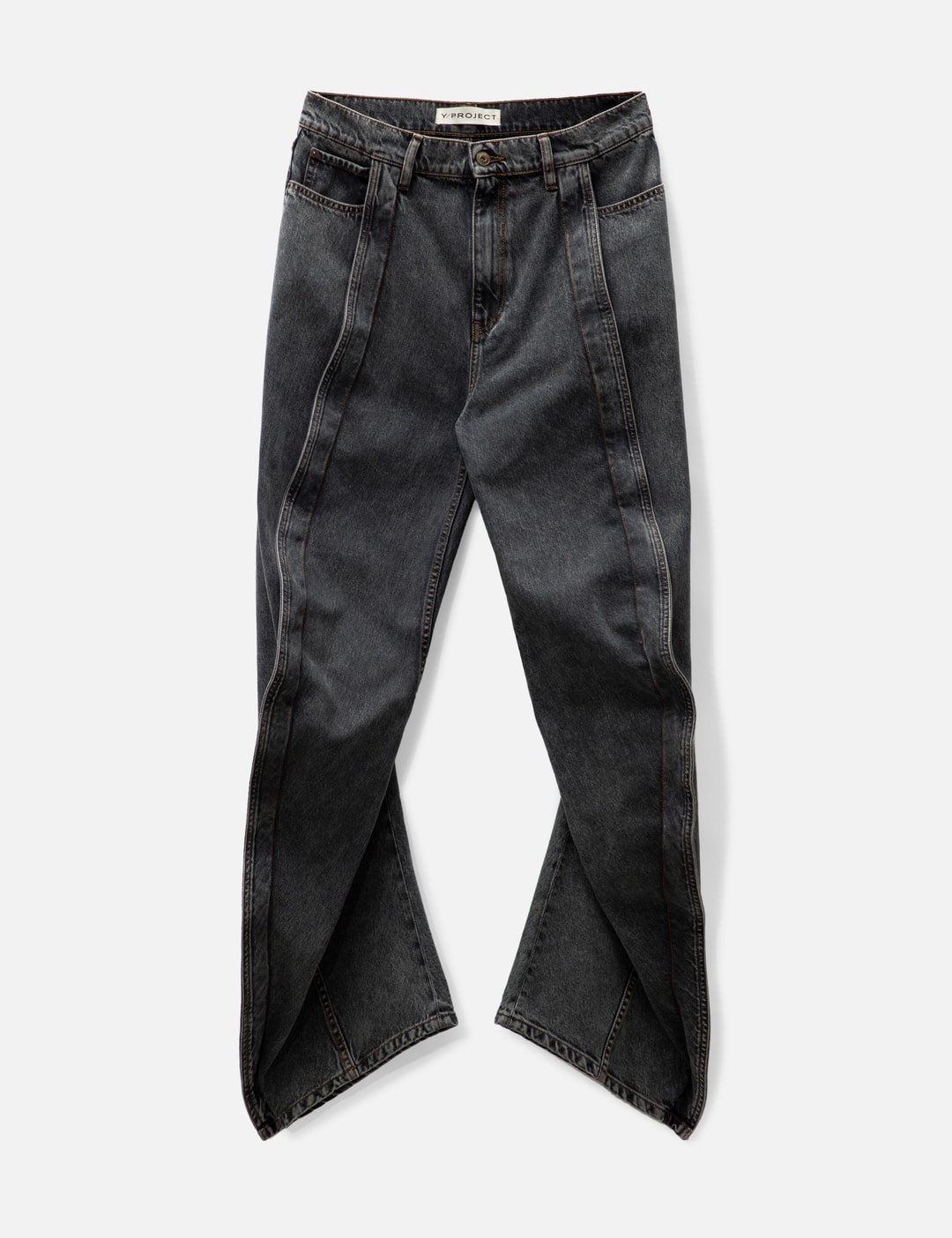 - Y/PROJECT - Evergreen Banana Jeans - Washed denim fabric - Unique banana-shaped silhouette - Ruffled effect at front - 5 pocket style - Color: Evergreen Vintage Black - Country Of Origin: FR - Material: 100% Organic Cotton - See more Jeans and Clothing SIZING - Model wears size 30 - Model measures: Height 188cm, Chest 36”/90cm, Waist 32”/83cm, Hip 37”/93cm