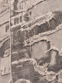frayed denim shirt Highlights - Grey - Cotton - Frayed detailing - Applique logo - Classic collar - Concealed front fastening - Long sleeves - Curved hem Imported Composition Cotton 100%