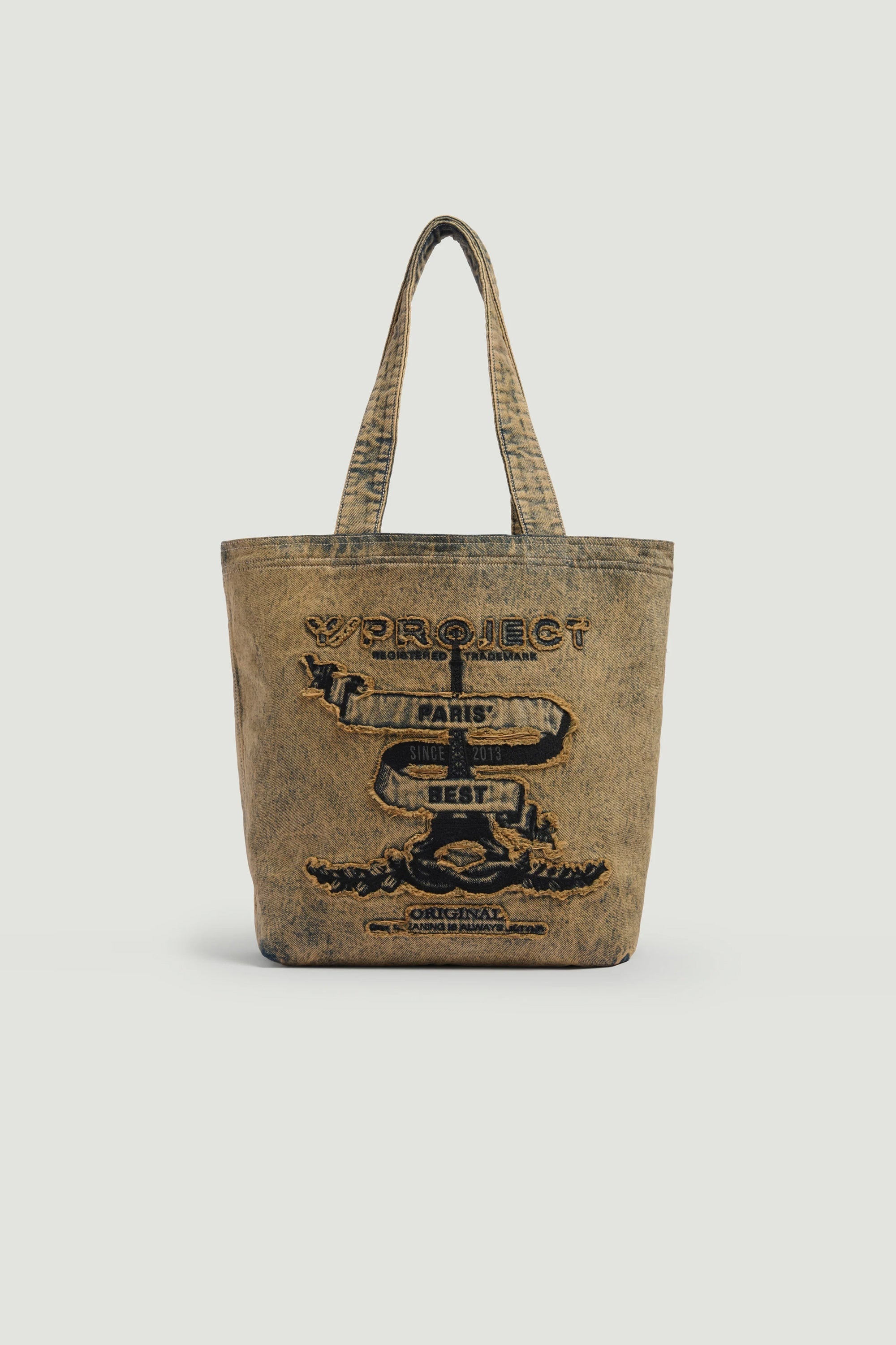 Discover the PARIS' BEST TOTE BAG .Large tote bag with leather straps and embroidered Y/PROJECT Paris' Best logo stitched across the front. Shop now! - Made in Poland MATERIAL 100% COTTON, GARNISSAGE: 100% POLYESTER