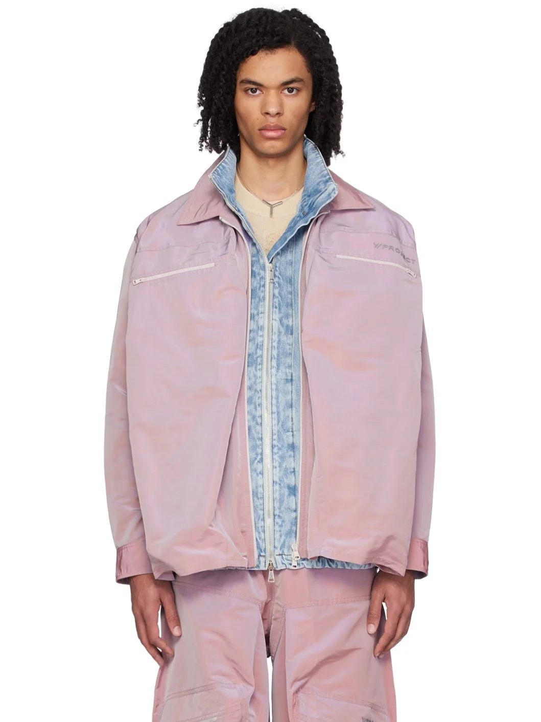 Stretch nylon taffeta shirt. · Spread collar · Two-way zip closure · Logo bonded at chest · Zip and welt pockets · Gathering at front · Single-button barrel cuffs · Box pleat at back yoke · Partially lined Supplier color: Iridescent lilac 100% polyester. Made in Poland 241893M192000