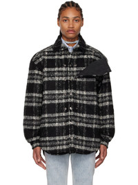 Insulated brushed acrylic-blend jacket. Detachable panels and check pattern throughout. · Spread collar · Button closure · Seam pockets · Single-button barrel cuffs · Box pleat at back yoke · Full satin lining · Logo-engraved silver-tone hardware Supplier color: Black/White Body: 48% acrylic, 28% polyester, 12% virgin wool, 9% wool, 5% polyamide. Lining: 100% polyester.