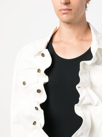 wire denim jacket Highlights - Ivory white - Organic cotton - Denim - Classic collar - Long sleeves - Buttoned cuffs - Front button fastening - Two button-fastening chest pockets - Two side slit pockets - Unisex - When buying this unisex item, keep in mind that it is graded in standard men's sizing. Imported Composition Organic Cotton 100% SIZE & FIT Model measurements Height 5 ft 11 in(1.8 m) Bust/Chest 33.07 in(84 cm) Hips 37.4 in(95 cm) Waist 25.19 in(64 cm) Measurement CHEST 47.24 in(120 cm) SLEEVE LENGTH 24.8 in(63 cm) Shoulder Width 19.68 in(50 cm) LENGTH 25.98 in(66 cm) FittingInformation This unisex piece is designed for a loose fit whether you usually select women's or men's sizes Sturdy and hard-wearing, this denim piece offers no stretch Washing instructions Machine Wash