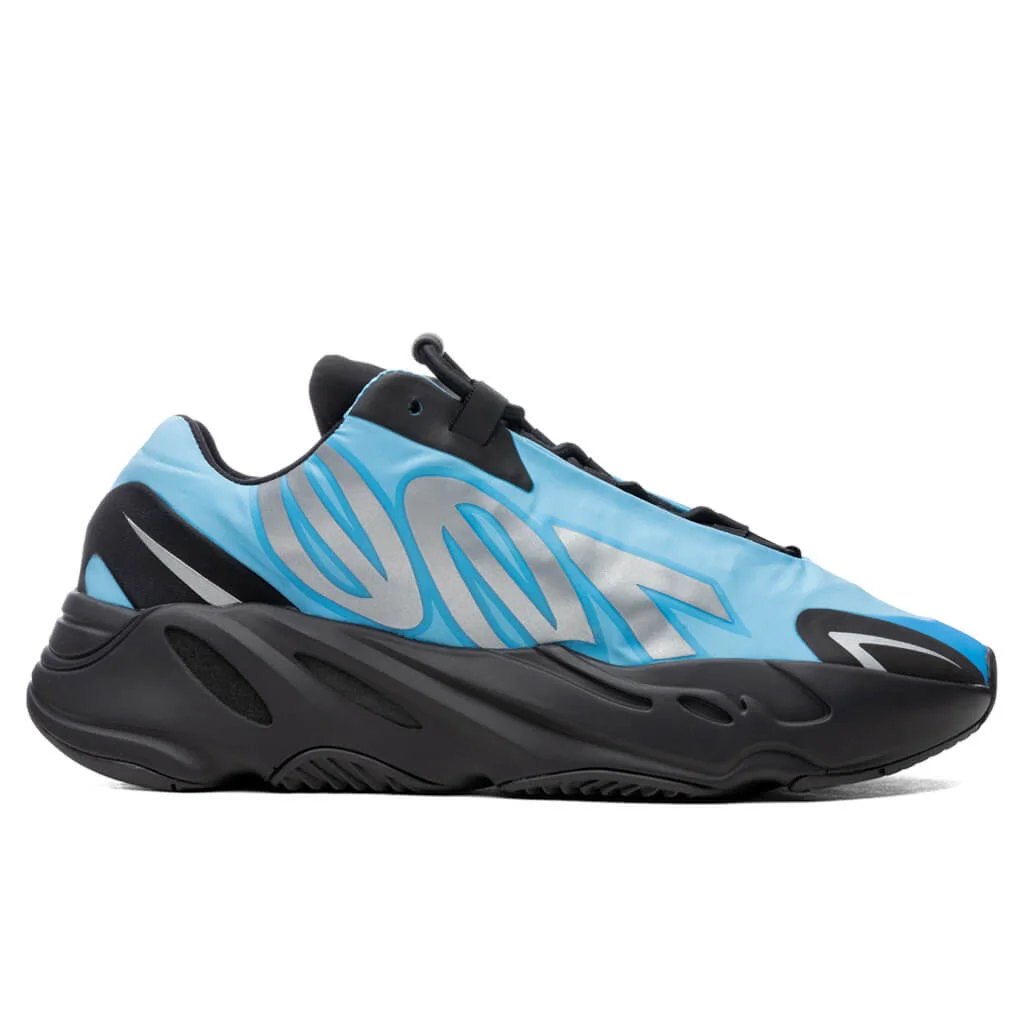 The Adidas Yeezy Boost 700 is featured in its latest colorway as a bright blue base is contrasted by bold black accents. The MNVN iteration shares the sole from the first and second 700 but replaces the usual suede and mesh materials with a lightweight nylon upper allowing for a flexible fit. Reflective details are placed throughout the nylon upper for a bold finish. The rubber outsole protects the inner Boost technology that offers premium cushioning and a responsive step on every terrain. DUE TO THE LIMITED NATURE OF THIS PRODUCT, ALL SALES ARE FINAL. THIS ITEM IS NOT ELIGIBLE FOR DISCOUNTS OR SPECIAL PROMOTIONS. - Nylon upper - Reflective details - Boost midsole - Rubber outsole - Lace closure - All sizes are listed in U.S. Men's sizing unless stated otherwise - Style no: GZ3079
