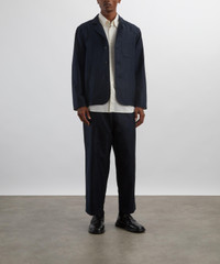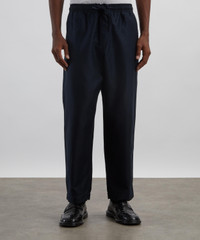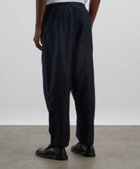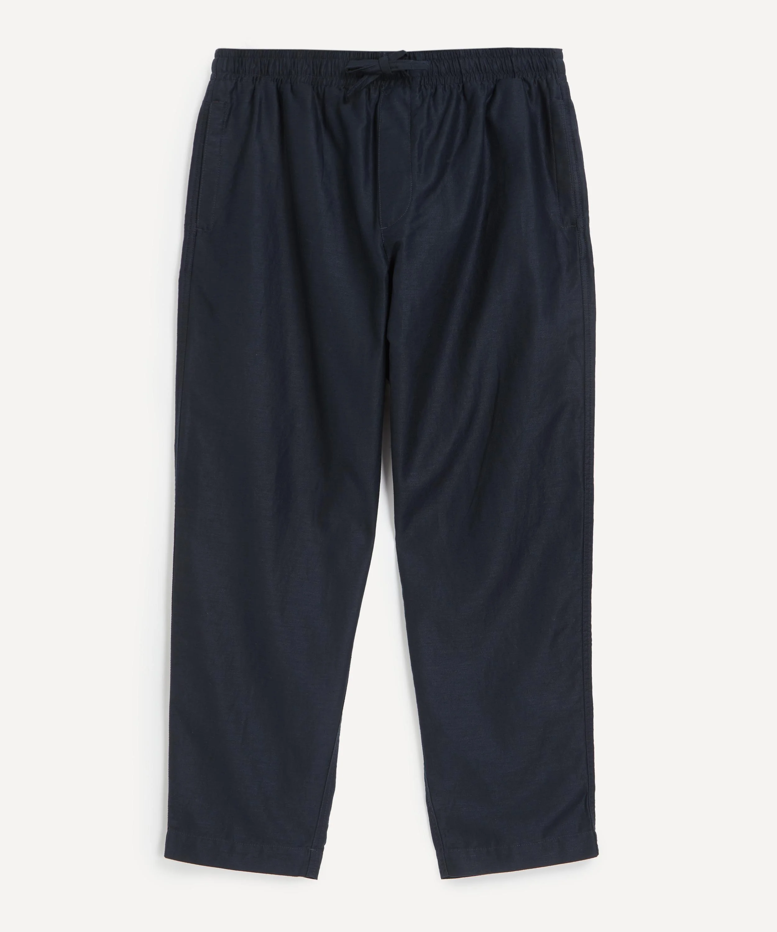 DETAILS Tapered trousers Garment-dyed bonded cotton cupro Relaxed fit Elasticated drawstring waistband Mock stitch fly Back patch pocket with loop detail SIZE & FIT Model is 186cm/6'1"; Chest: 91.5cm; Waist: 74cm and wears 32 COMPOSITION & CARE 75% Cotton; 25% Linen Hand wash cold