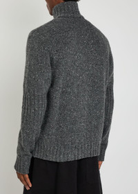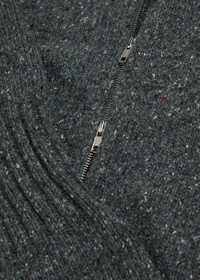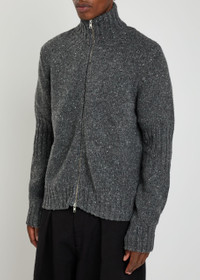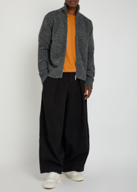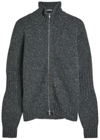 Info & Care YMC wool-blend;cardigan Flecked finish, high-neck, ribbed elbows and trims Two-way zip fastening through front 80% virgin wool, 20% polyamide Hand wash Size & Fit Length shoulder to hem: 27 inches/ 68.5cm Midweight Relaxed fit Model is 6'1"/ 185cm, chest size 38.5 inches and wears a size medium