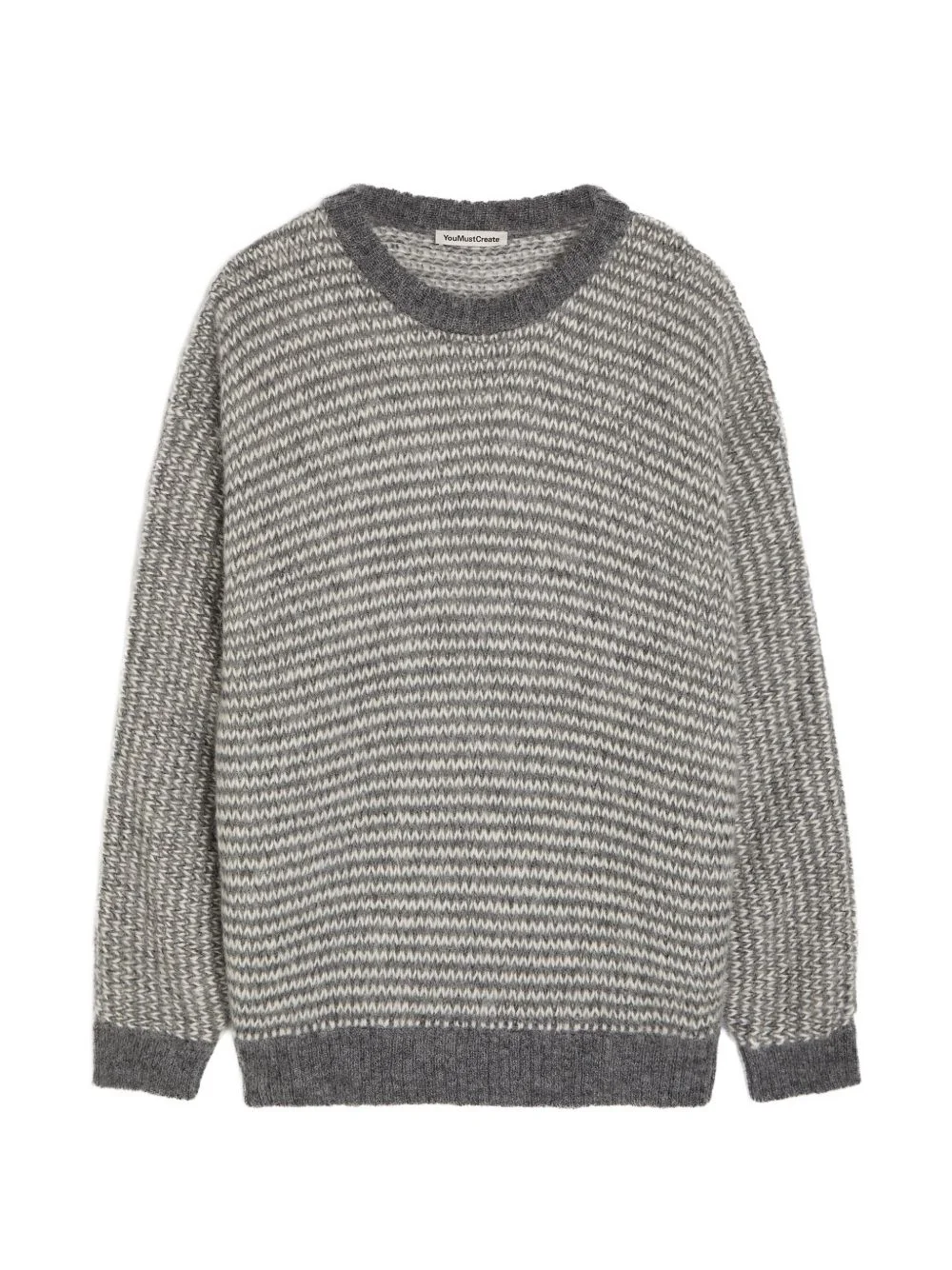 striped crew-neck sweater Highlights - Grey and white - Striped design - Crew neck - Long sleeves - Ribbed hem - Ribbed cuffs Imported Composition Alpaca 34%, Mohair 34%, Recycled Polyamide 32% Washing instructions Machine Wash