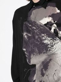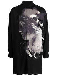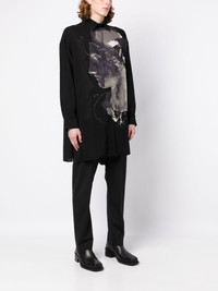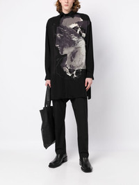 218/1+227/1 R-Yohji Has B shirt black graphic print to the front classic collar front button fastening long sleeves buttoned cuffs chest patch pocket Imported Composition Rayon 100% SIZE & FIT Model measurements Height 6 ft 2 in(1.87 m) Bust/Chest 36.22 in(92 cm) Hips 37.79 in(96 cm) Waist 28.34 in(72 cm) FittingInformation This piece fits true to size. We recommend you get your regular size Cut for a loose fit Made with a lightweight fabric Washing instructions Dry Clean Only
