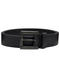 Buffed leather belt. · Logo embossed at length · Keeper loop · Gunmetal-tone pin-buckle fastening · W1.25" Part of the Yohji Yamamoto POUR HOMME collection. Supplier color: Black Leather. Made in Japan 252573M131000