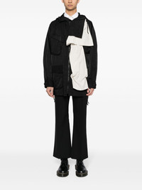 asymmetric hooded jacket Highlights - Black/white - Crinkled finish - Asymmetric design - Draped panel detail - Contrasting trim - Slouchy drawstring hood - Off-centre front button fastening - Front two-way zip fastening - Four front flap pockets - Drop shoulder - Long sleeves - Belted cuffs - Drawstring hem Imported Composition Polyamide 100%, Cotton 100% SIZE & FIT Model measurements Height 6 ft 2 in(1.87 m) Bust/Chest 31.49 in(80 cm) Hips 37.79 in(96 cm) Waist 27.95 in(71 cm) FittingInformation Designed to be unstructured, offering a loose fit throughout The internal drawstring at the hem allows for fitted preferences Made from a lightweight non-stretch fabric This piece fits true to size – take your usual size Washing instructions Read Manufacturer Guidelines
