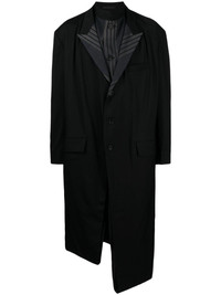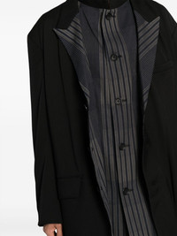 asymmetric striped-lining wool coat Highlights - Black - Wool - Layered design - Notched collar - Front button fastening - Striped lining - Long sleeves - Front flap pockets - Chest welt pocket - Cotton lining - Long length - Asymmetric hem Imported Composition Outer: Wool 100% Lining: Cupro 100% Cotton 100% SIZE & FIT Model measurements Height 6 ft 2 in(1.88 m) Bust/Chest 31.88 in(81 cm) Hips 35.82 in(91 cm) Waist 27.55 in(70 cm) FittingInformation Designed to be unstructured, offering a loose fit throughout Made from a heavyweight non-stretch fabric This piece fits true to size – take your usual size Washing instructions Dry Clean Only
