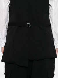 asymmetric wool waistcoat Highlights - Black - Front button fastening - Chest welt pocket - Two front welt pockets - Adjustable strap to the rear Imported Composition Wool 100% SIZE & FIT Model measurements Height 6 ft 2 in(1.88 m) Bust/Chest 34.25 in(87 cm) Hips 34.64 in(88 cm) Waist 26.77 in(68 cm) FittingInformation Designed for a slim fit, offering a comfortable fit that sits just away from the body The adjustable tabs allow for fitted preferences Made from a midweight non-stretch fabric Washing instructions Dry Clean Only