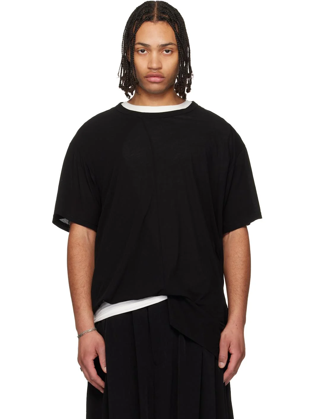 Cotton jersey T-shirt. · Rib-knit crewneck · Gathering at front · Vented asymmetrical hem Supplier color: Black 100% cotton. Made in Japan 261573M213014