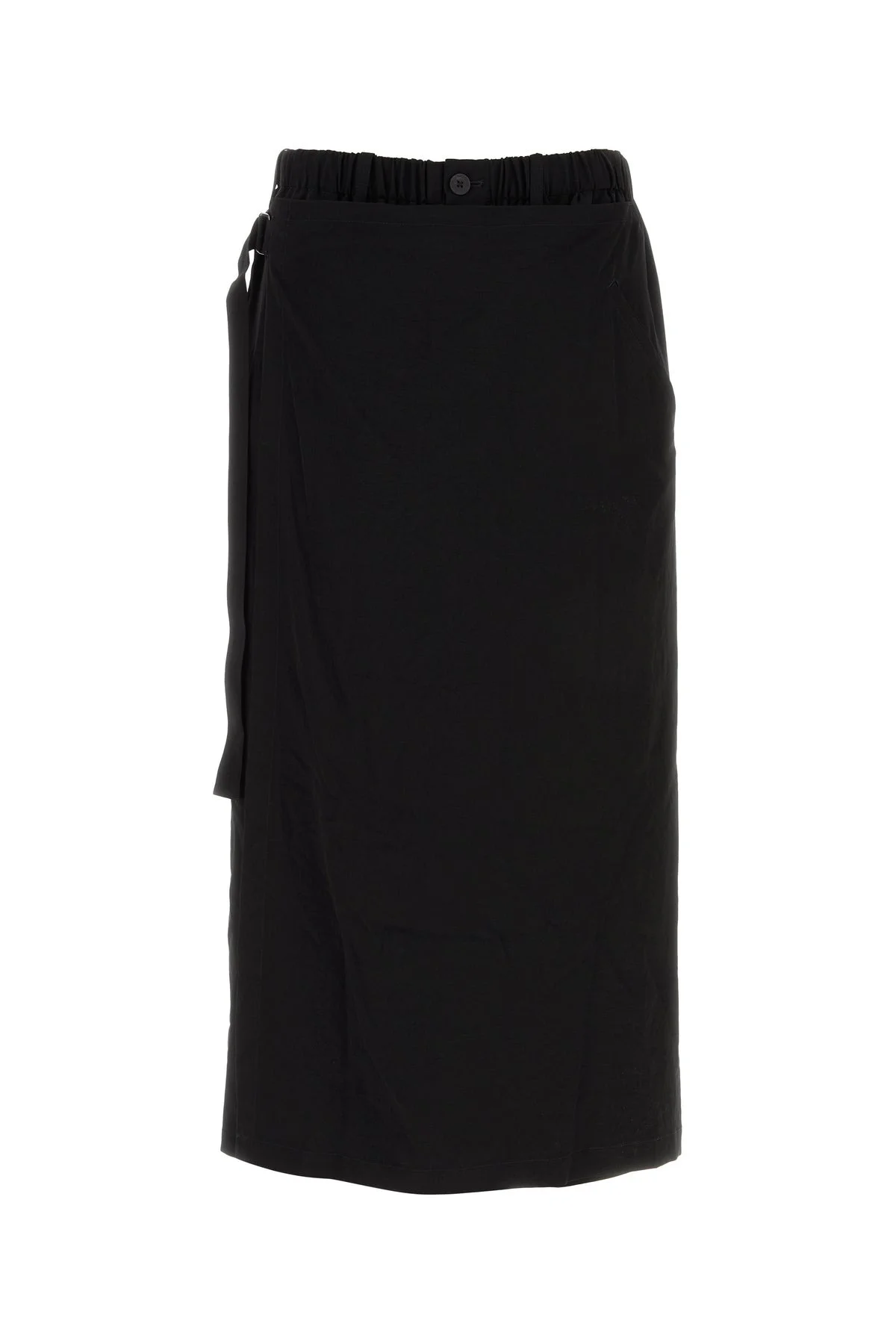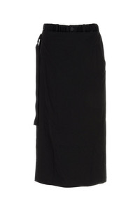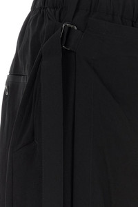 Pant-skirt realized in triacetate blend characterized by adjustable strap on the side. - Elastic waist - Belt loops at the waist - Concealed zip and single visible button closure - Seam pockets and two slit pockets at the back DETAILS Black triacetate blend pant-skirt Exterior: 57% Triacetate 43% Polyester Made in japan Sample size: 3