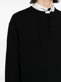 button up wool jumper Highlights - Black - Wool - Button up collar - Ribbed cuffs and hem - Drop shoulder - Long sleeves - High-low hem Imported Composition Wool 100% SIZE & FIT Model measurements Height 6 ft 2 in(1.87 m) Bust/Chest 33.07 in(84 cm) Hips 35.43 in(90 cm) Waist 26.77 in(68 cm) FittingInformation Designed for an oversized fit, offering additional room throughout Constructed with additional length on the sleeve Made with a midweight knit, this piece offers some stretch