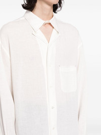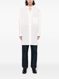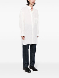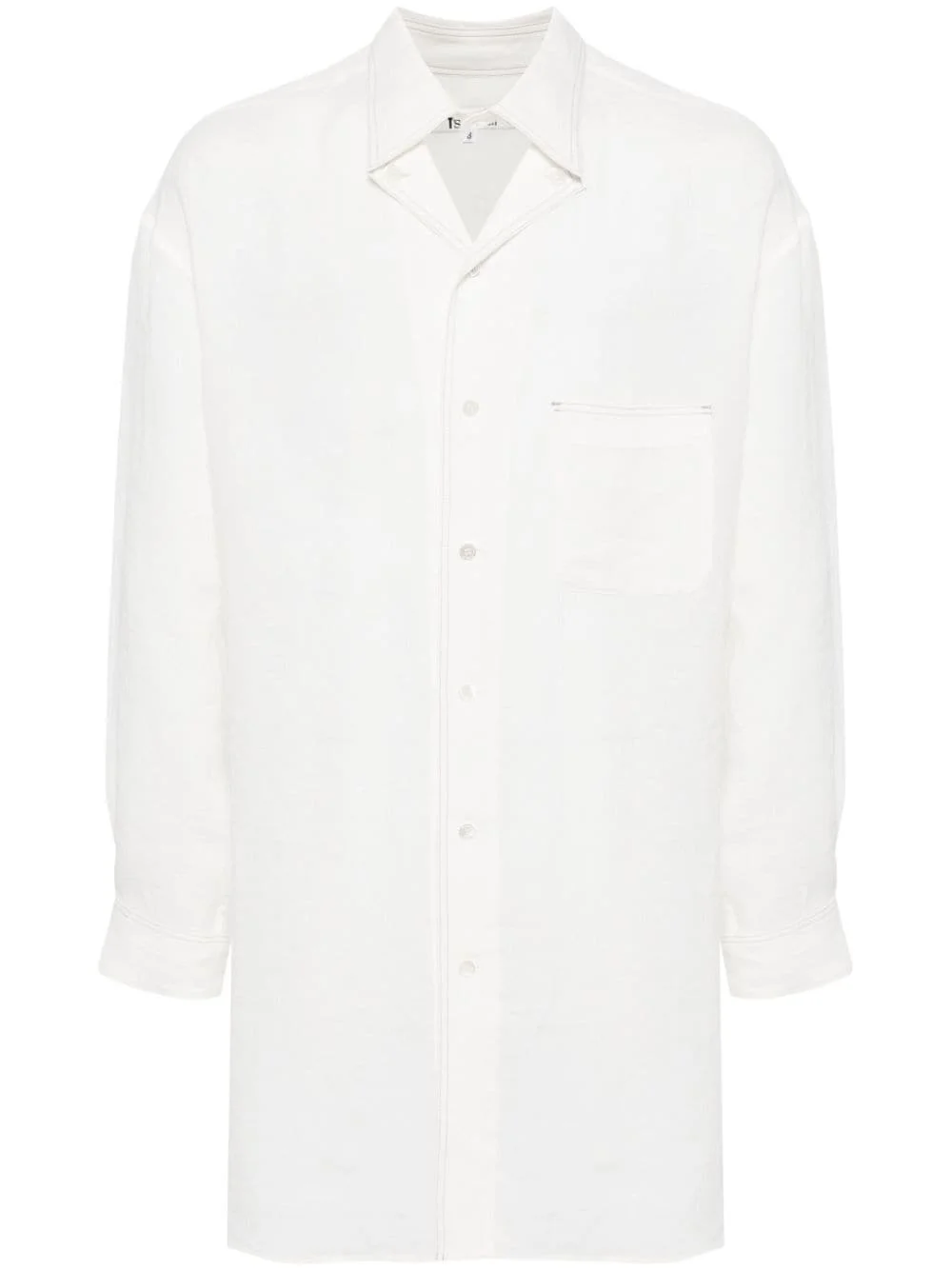 contrast-stitching linen shirt Highlights - Optical white - Linen/flax - Slub texture - Cut-out detailing - Contrast stitching - Pointed flat collar - Front button fastening - Long sleeves - Chest patch pocket - Short side slits - Rear curved hem Imported Composition Linen/Flax 100% SIZE & FIT Model measurements Height 6 ft 2 in(1.87 m) Bust/Chest 33.07 in(84 cm) Hips 35.43 in(90 cm) Waist 26.77 in(68 cm) FittingInformation Designed to be unstructured, offering a loose fit throughout Constructed with additional length on the sleeve Made from a midweight non-stretch fabric This piece fits true to size – take your usual size