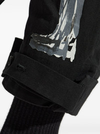 cotton-blend trousers Highlights - Black - Concealed fly and button fastening - Two side slit pockets - Two rear button-fastening jetted pockets - Graphic print to the rear Imported Composition Cotton 90%, Flax 10%