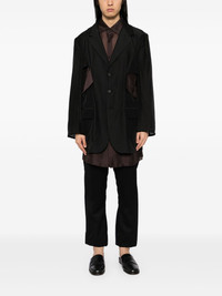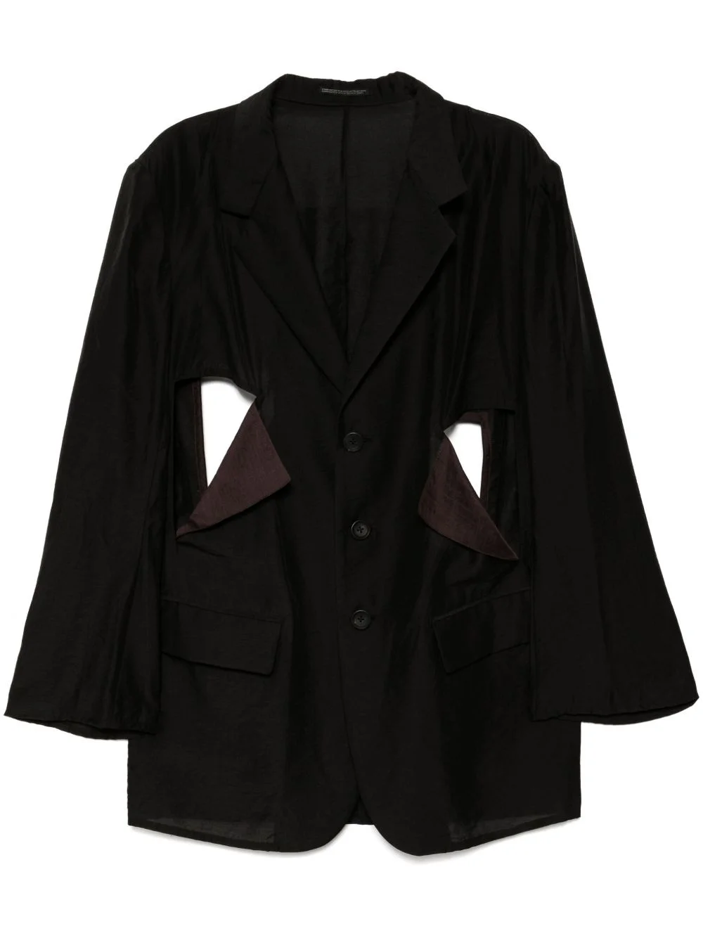 cut-out blazer Highlights - Black - Front button fastening - Two chest flap pockets - Long sleeves Imported Composition Rayon 51%, Nylon 27%, Cupro 22% SIZE & FIT Model measurements Height 6 ft 2 in(1.88 m) Bust/Chest 34.25 in(87 cm) Hips 34.64 in(88 cm) Waist 26.77 in(68 cm) FittingInformation Designed for a relaxed fit, this piece allows for comfort and movement when worn The vented hem offers movement at the rear Made from a lightweight non-stretch fabric