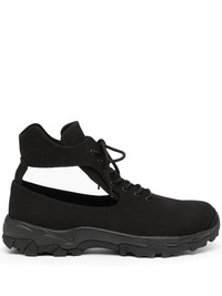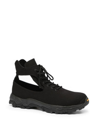 cut-out canvas high-top sneakers Yohji Yamamoto's sneakers showcase the brand's experimental aesthetic. Set on ridged rubber soles, this black cotton-canvas iteration has a high-top silhouette cut-outs at the sides. Imported Composition Sole: Rubber 100% Outer: Cotton 100% Lining: Fabric 100% SIZE & FIT Measurement Sole height 1.57 in(4 cm)