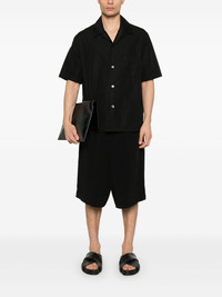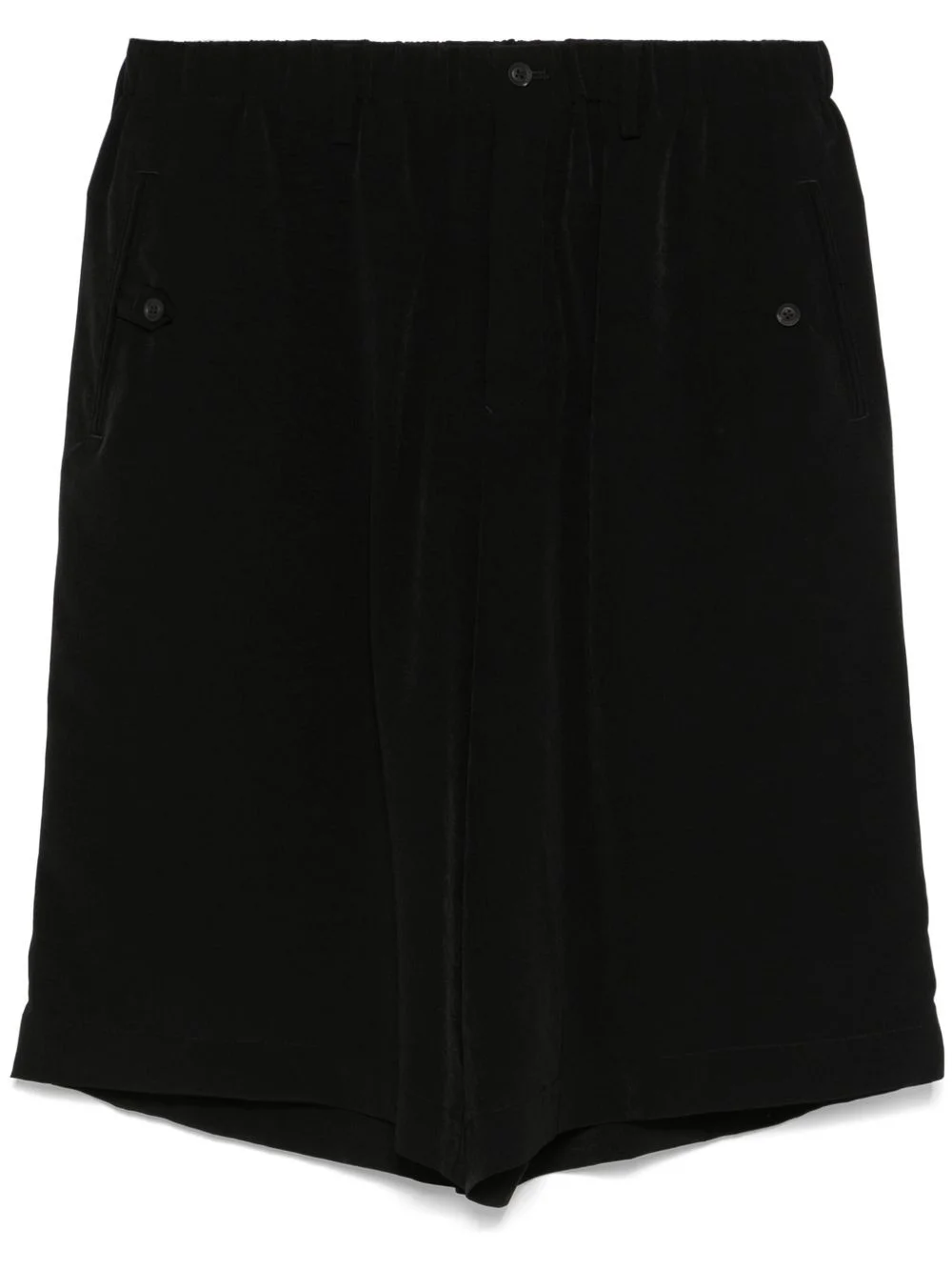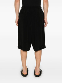 decorative-tabs shorts Highlights - Black - Concealed fly and button fastening - Elasticated drawstring waistband - Two front jetted pockets - Two rear welt pockets Imported Composition Triacetate 57%, Polyester 43% SIZE & FIT Model measurements Height 6 ft 1 in(1.85 m) Bust/Chest 35.82 in(91 cm) Hips 37.79 in(96 cm) Waist 29.13 in(74 cm) FittingInformation Designed with a wide leg, offering a loose and roomy fit The elasticated waist allows for a comfortable fit Made from a lightweight non-stretch fabric Washing instructions Dry Clean Only