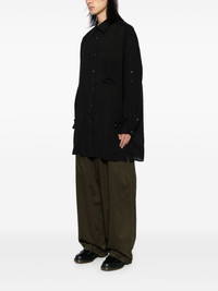 long-length shirt Highlights - Black - Front button fastening - Classic collar - Chest patch pocket - Long sleeves - Drop armholes - Buttoned cuffs - Decorative button detailing - Two front button-fastening jetted pockets - Straight hem - Knee-length Imported Composition Cellulose Acetate 100% SIZE & FIT Model measurements Height 6 ft 2 in(1.88 m) Bust/Chest 34.25 in(87 cm) Hips 36.61 in(93 cm) Waist 28.34 in(72 cm) FittingInformation Designed to be unstructured, offering a loose fit throughout Made from a midweight non-stretch fabric