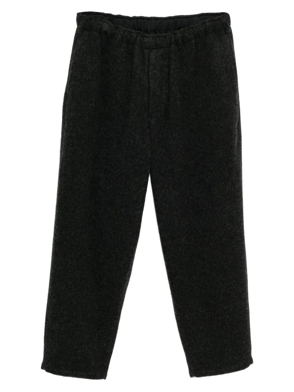 drawstring tapered trousers Highlights - Charcoal grey - Concealed front zip fastening - Two side welt pockets - Two rear welt pockets - Belt loops Imported Composition Lining: Cupro 100% Outer: Wool 90%, Nylon 10% SIZE & FIT Model measurements Height 6 ft 2 in(1.88 m) Bust/Chest 34.25 in(87 cm) Hips 34.64 in(88 cm) Waist 26.77 in(68 cm) FittingInformation Designed for a tapered leg, offering a loose unrestricted fit over the leg with a closer fit towards the ankle Adjust this piece’s waistband to your preference using the drawstring Made from a heavyweight non-stretch fabric Washing instructions Dry Clean Only