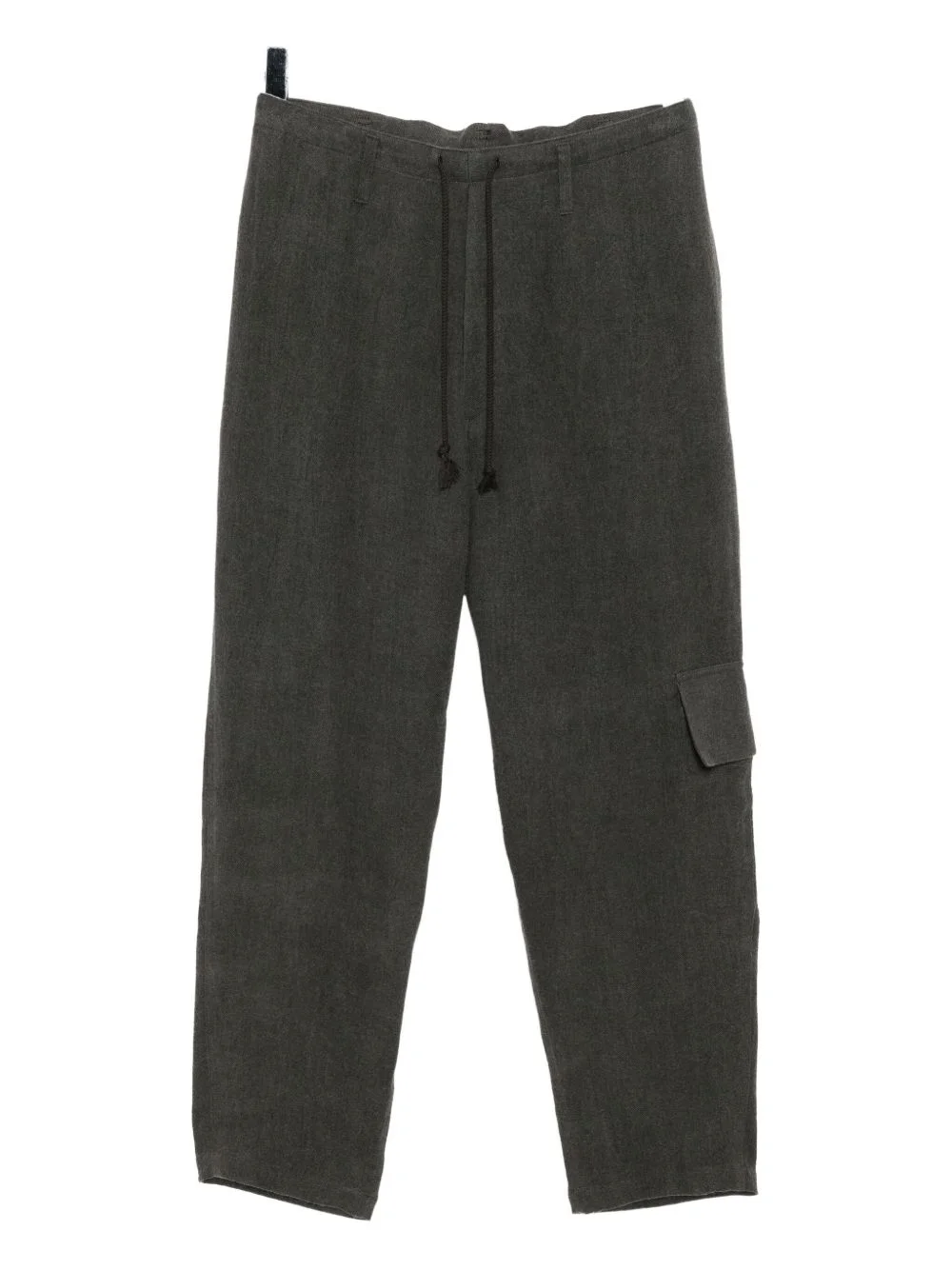 drawstring trousers Highlights - Stone grey - Front zip fastening - Two side slash pockets - Two rear welt pockets Imported Composition Outer: Linen/Flax 46%, Ramie 44%, Wool 10% Lining: Cupro 100% SIZE & FIT Model measurements Height 6 ft 2 in(1.88 m) Bust/Chest 34.25 in(87 cm) Hips 34.64 in(88 cm) Waist 26.77 in(68 cm) FittingInformation Designed for a tapered leg, offering a loose unrestricted fit over the leg with a closer fit towards the ankle Adjust this piece’s waistband to your preference using the drawstring Made from a midweight non-stretch fabric