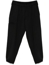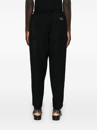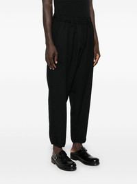 elasticated wool trousers Highlights - Black - Wool - Pleat detailing - Applique logo - Elasticated waistband - Belt loops - Two diagonal pockets to the sides - Two rear patch pockets - Tapered leg - Elasticated ankles Imported Composition Wool 100% SIZE & FIT Model measurements Height 6 ft 2 in(1.87 m) Bust/Chest 36.41 in(92.5 cm) Hips 37 in(94 cm) Waist 29.52 in(75 cm) FittingInformation Designed for a tapered leg, offering a loose unrestricted fit over the leg with a closer fit towards the ankle Adjust this piece’s waistband to your preference using the drawstring Made from a midweight non-stretch fabric