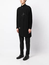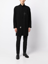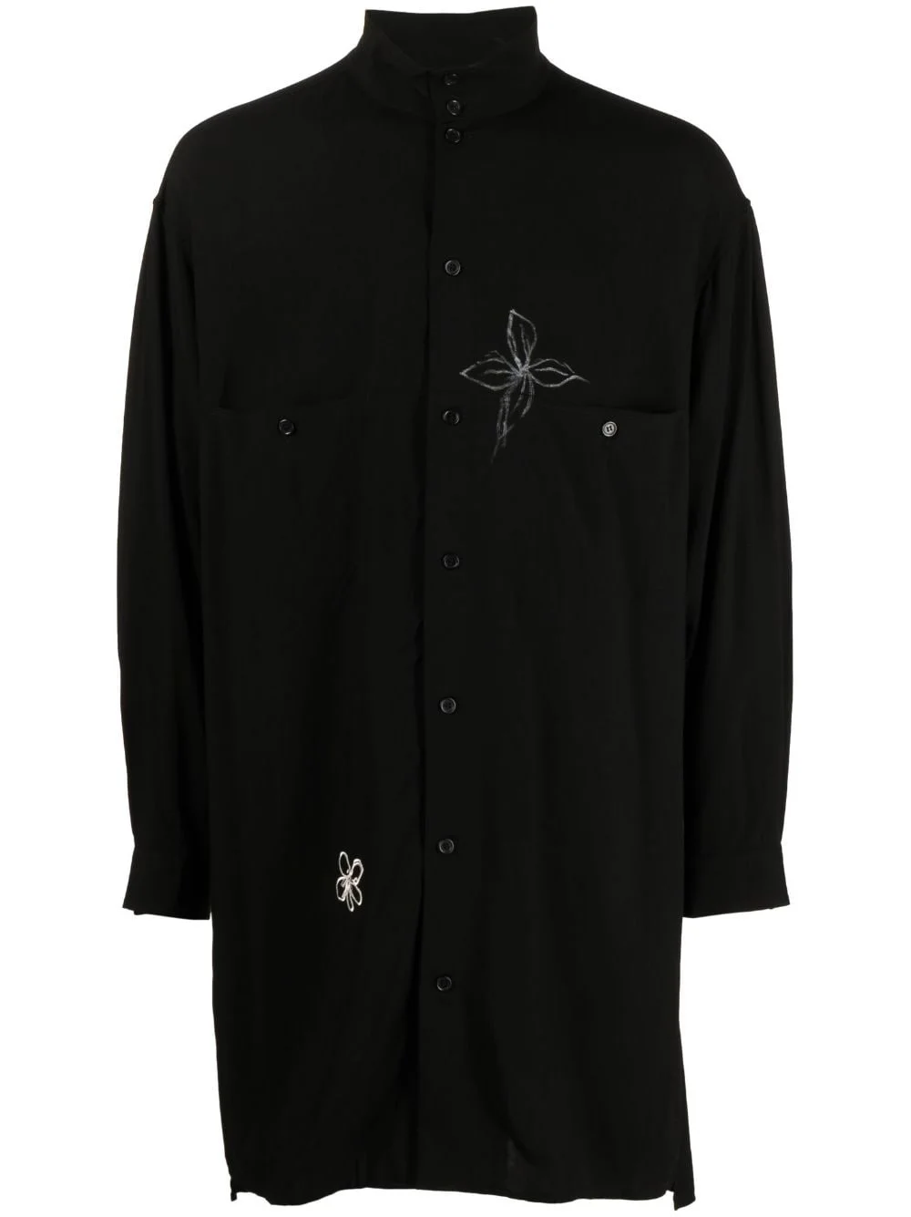flower-doodle long shirt Highlights - Black - Floral detail - Classic collar - Front button placket - Long sleeves - Buttoned cuffs - Straight hem - Thigh-length Imported Composition Rayon 100% SIZE & FIT Model measurements Height 6 ft 2 in(1.87 m) Bust/Chest 34.25 in(87 cm) Hips 36.22 in(92 cm) Waist 29.52 in(75 cm) FittingInformation Designed to be unstructured, offering a loose fit throughout Made from a midweight non-stretch fabric This piece fits true to size – take your usual size Washing instructions Read Manufacturer Guidelines