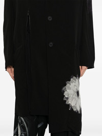 flower-print slit jacket Highlights - Black - Front button fastening - Chest welt pocket - Two front welt pockets Imported Composition Silk 100% SIZE & FIT Model measurements Height 6 ft 2 in(1.88 m) Bust/Chest 34.25 in(87 cm) Hips 34.64 in(88 cm) Waist 26.77 in(68 cm) FittingInformation Designed for an oversized fit, offering additional room throughout The internal shoulder pads offer a structured shape Made from a lightweight non-stretch fabric