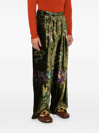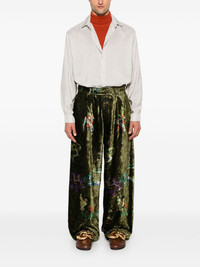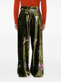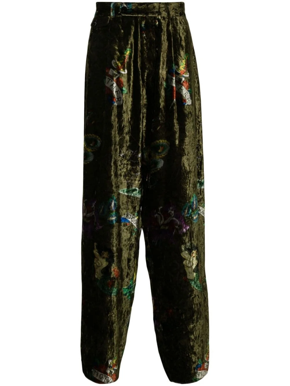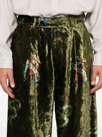 graphic-print trousers Highlights - Green/multicolour - Velvet - Crinkled finish - All-over graphic print - Concealed fly and button fastening - Mid-rise - Belt loops - Two side slash pockets - Front flap pocket - Pleat detailing - Dart detailing - Two rear flap pockets - Wide leg Imported Composition Outer: Rayon 100%, Polyester 100% Lining: Cupro 100% SIZE & FIT Model measurements Height 6 ft 2 in(1.87 m) Bust/Chest 37.79 in(96 cm) Hips 37.79 in(96 cm) Waist 30.31 in(77 cm) FittingInformation Designed with a wide leg, offering a loose and roomy fit Made from a midweight non-stretch fabric