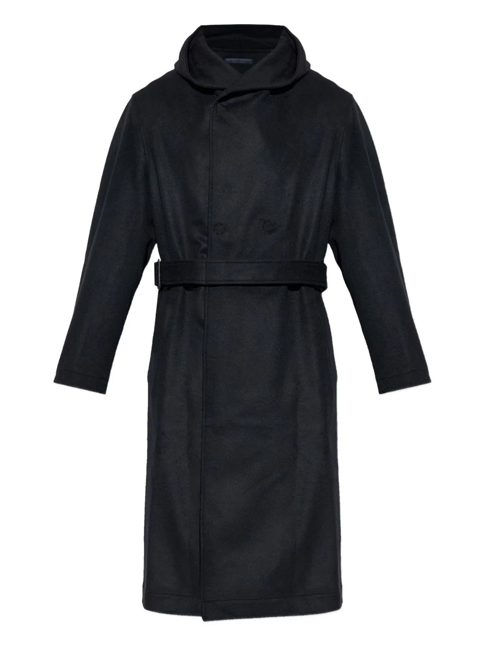 hooded belted wool coat Highlights - Black - Hooded - Belted - Button fastening - Long sleeves Imported Composition Outer: Wool 100%, Cashmere 100% Lining: Cupro 100% Washing instructions Read Manufacturer Guidelines