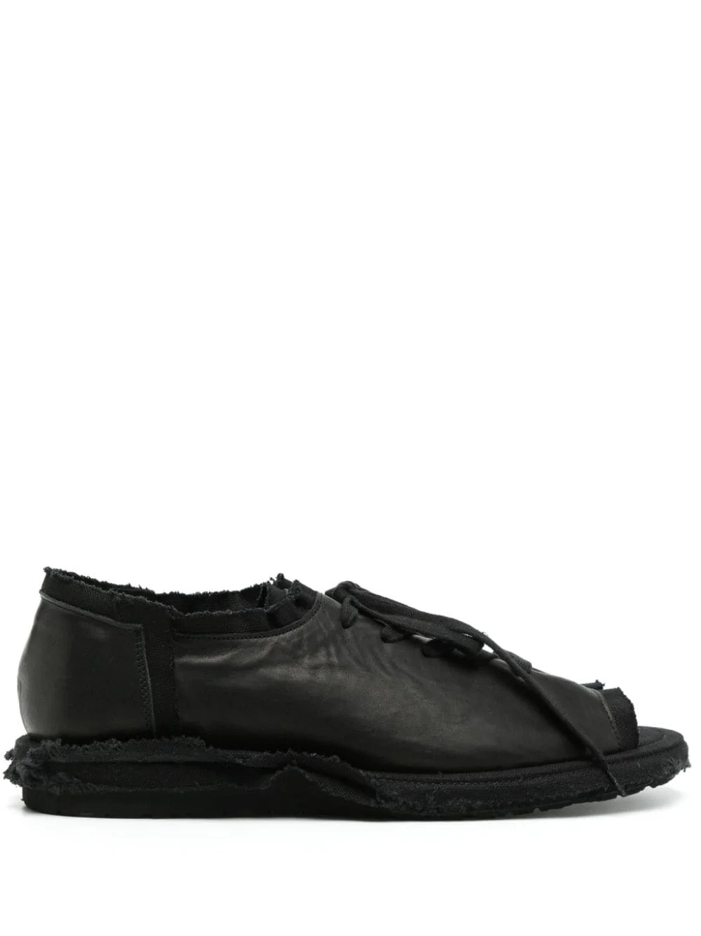 lace-up leather sandals Highlights - Black - Calf leather - Frayed detailing - Front lace-up fastening - Round open toe - Flat leather sole Imported Composition Sole: Rubber 100% Outer: Calf Leather 100% Trims: Cotton 100% Lining: Calf Leather 100% SIZE & FIT Measurement HEEL 1.18 in(3 cm) HEIGHT 3.14 in(8 cm) Sole height 0.59 in(1.5 cm)