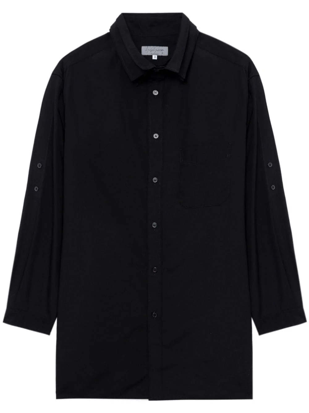 layered-collar cotton shirt Highlights - Black - Cotton - Layered details - Straight-point collar - Front button fastening - Long sleeves - Buttoned cuffs - Chest patch pocket - Straight hem Imported Composition Cotton 100%