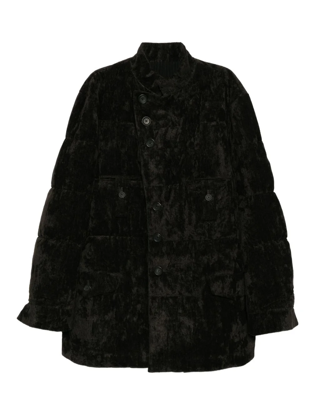 linen velvet horizontal padded coat Highlights - Cedar brown - Padded design - Front button fastening - High neck - Front patch pocket - Reversible Imported Composition Outer: Linen/Flax 100% Lining: Rayon 100% Polyester 100% SIZE & FIT Model measurements Height 6 ft 2 in(1.88 m) Bust/Chest 34.25 in(87 cm) Hips 34.64 in(88 cm) Waist 26.77 in(68 cm) Washing instructions Dry Clean Only
