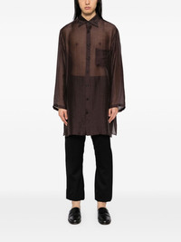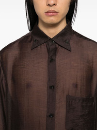 long-sleeved shirt Highlights - Rust brown - Front button fastening - Chest patch pocket - Semi-sheer construction Imported Composition Lyocell 70%, Nylon 30% SIZE & FIT Model measurements Height 6 ft 2 in(1.88 m) Bust/Chest 34.25 in(87 cm) Hips 34.64 in(88 cm) Waist 26.77 in(68 cm) FittingInformation Designed for a relaxed fit, this piece allows for comfort and movement when worn Made from a lightweight non-stretch fabric